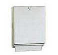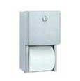 Satin-finish stainless steel with stainless steel dispensing mechanism. Door has flat face with protruding tumbler lock. Holds two rolls up to 5-1/4" (133mm) dia. (1800 sheets). Extra roll automatically drops in place when bottom roll is depleted. Theft-resistant, heavy-duty spindles. Patented.