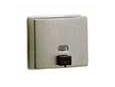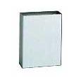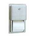 Satin-finish stainless steel with stainless steel dispensing mechanism. Door has flat face with protruding tumbler lock. Holds two rolls up to 5-1/4" (133mm) dia. (1800 sheets). Extra roll automatically drops in place when bottom roll is depleted. Theft-resistant, heavy-duty spindles. Extends 2-3/4" (70mm) from wall. Patented.
