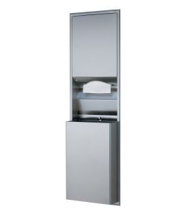 Unit includes convertible folded paper towel module and 12-gallon waste receptacle module which can be interchanged with an automatic, universal or touch-free roll towel module and 18-gallon waste receptacle module, respectively. Cabinet is not replaced when changing modules.